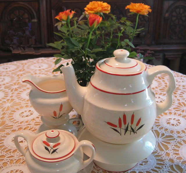 JoAnn from Scene Through My Eyes shared her delightful tea set she used in an Autumn tea.
