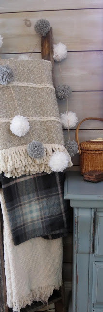 Jolena from While I Linger shared her winter décor. I especially loved her blanket ladder with the large pom pom garland!