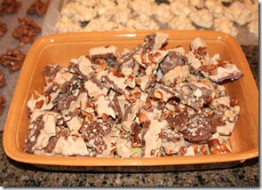 Lonnie, Tracy, and Paityn were the first to start digging in. Here they are rolling chocolate melt-aways into vanilla wafers. This is a recipe I got from my mother-in-law and it just happens to be Lonnie’s favorite.