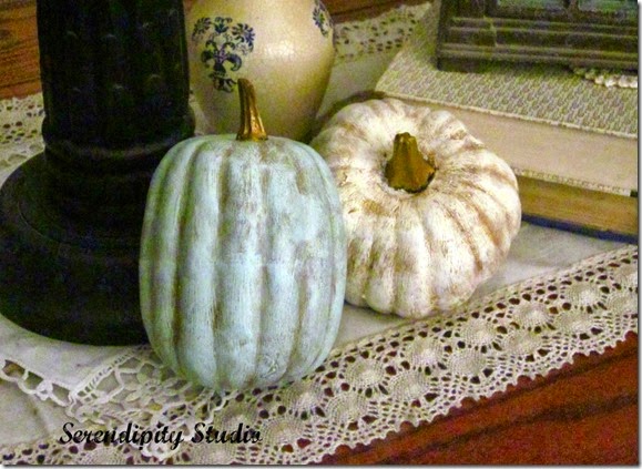 Carmen from Serendipity Studio is an amazing artist. She shared the pumpkins that she transformed with Chalk paint. You need to see what they looked like before.