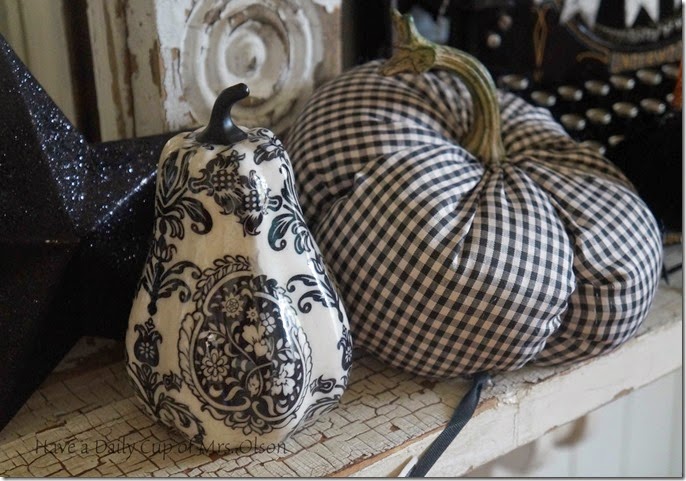 Love, love, love it, Jann. I always enjoy seeing how you change up your mantel with the seasons and holidays. The black and white theme with just a bit of orange is perfect. xxx ~ Nancy