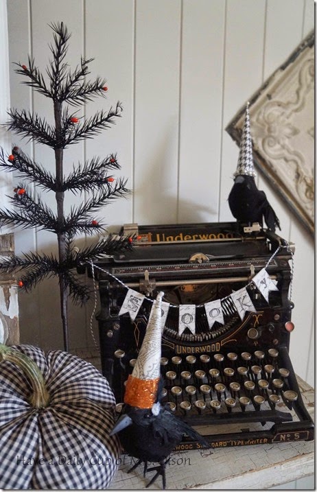 Love your Halloween décor!! I got an old typewriter for my daughter and she decided she didn't want it...so I kept it. Love the little banner that you made and now I want to make me one to put on this old typewriter that is now mine.
