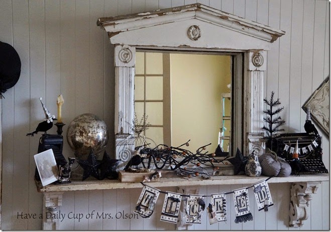 LOVE!!!! I love the crows with the pointed hats. They are so so cute. You did a great mantel last year but this year I think this one tops last year. Love this so much. Great job. You are the holiday vignette queen. I always love to see what you do for the different holidays. This one for Halloween is sweeeeet!
