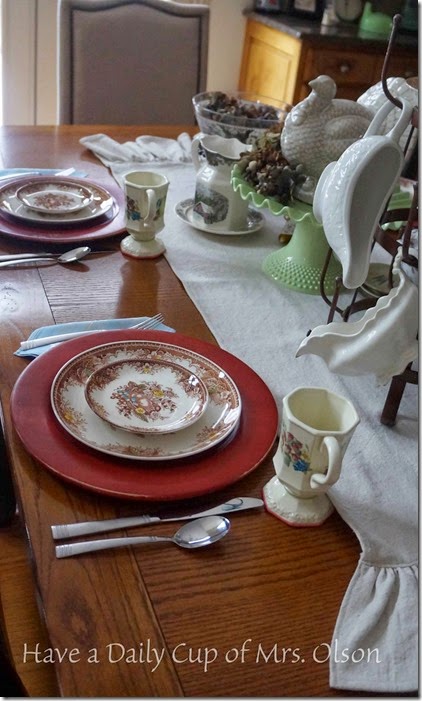 I love your Thanksgiving dinnerware and decor. They really speak to me of warmth and family, just perfect!